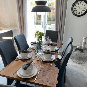 1. A fabulous burr elm dining table that has been handmade for us by local craftsmen, Jonathan Taylor Joinery. I wanted a rustic look to contrast with the very clean look of the ‘paint to order’ anthracite grey kitchen. This bespoke table has been designed from scratch and has stylish ‘O’ frame legs. Very much a centre piece;