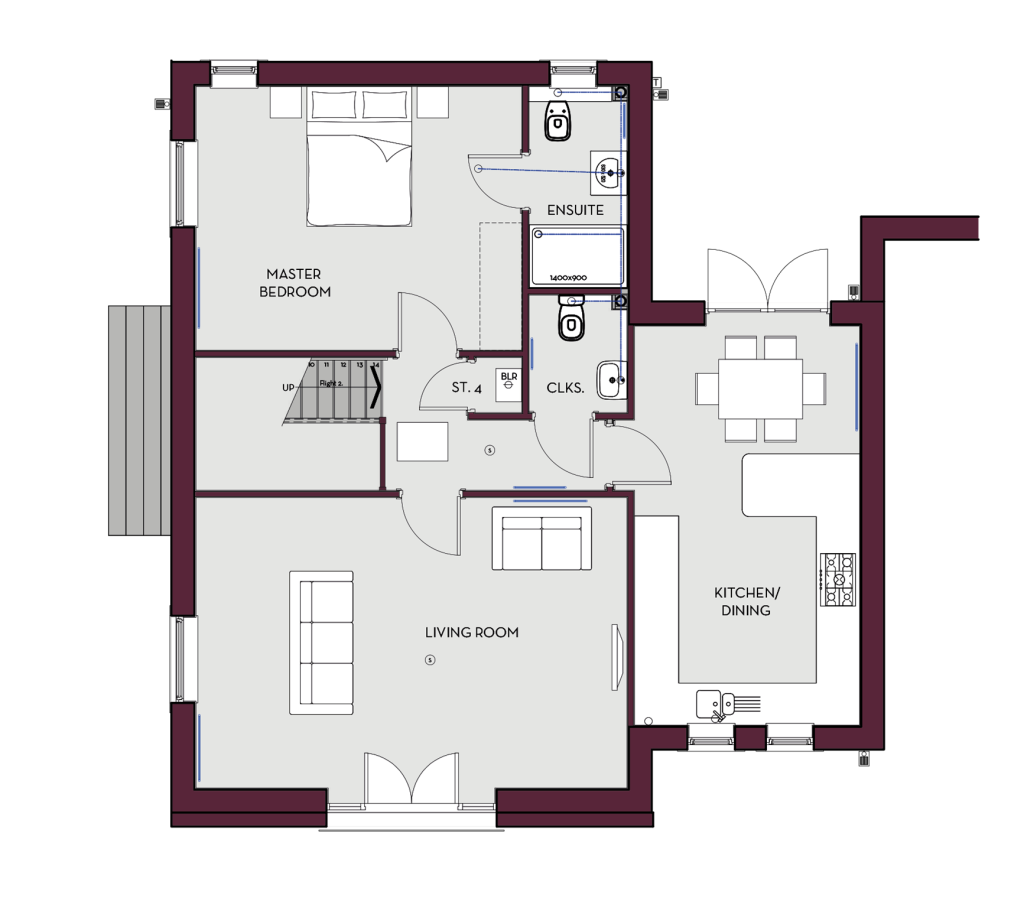 Full height windows in our trademark anthracite grey make a statement whilst filling the rooms with natural light.