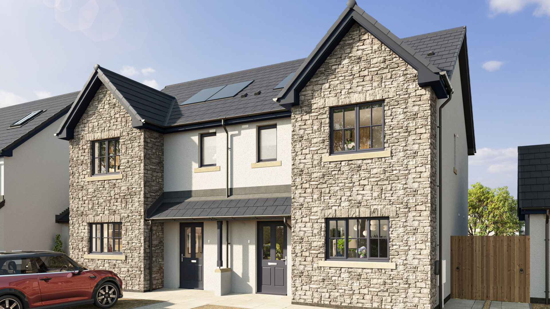 Externally, The Gelt comes with curb appeal featuring a small porch area, windows and doors in our trademark anthracite grey and a private driveway in Tegula blocked paving. Turfed gardens are also included, giving you peace of mind that everything is taken care of when you move in. Plus, some plots include an attached garage, providing even more storage space.