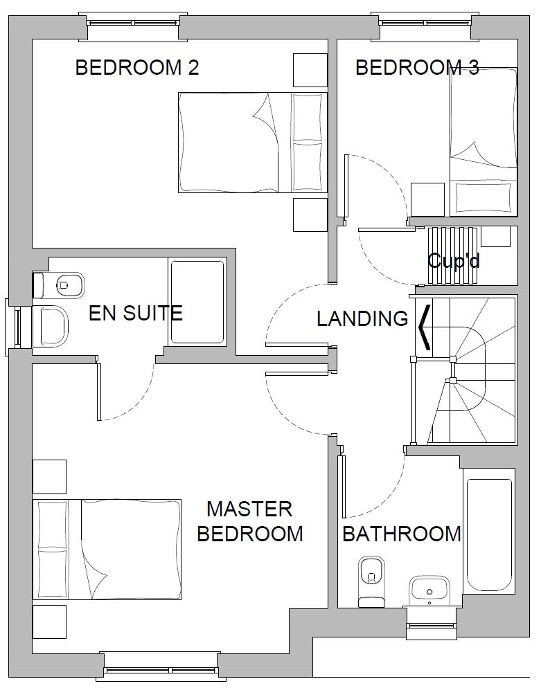 Upstairs there is the lovely master bedroom with ensuite, a double bedroom and a single bedroom along with the family bathroom. Outside is a single garage.