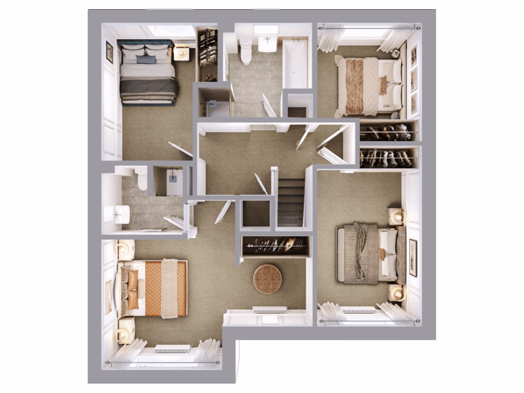 The Eden’s design captures the essence of traditional house building and it’s thoughtful design creates a desirable family home with plenty of space for families to grow and spend time together. An open plan kitchen/dining area lends itself perfectly to being the heart of the home, with French doors that open out to the rear garden. A generous lounge provides you with somewhere perfect for relaxing and entertaining. Plus, there’s a utility room and cloakroom that complete the ground floor.