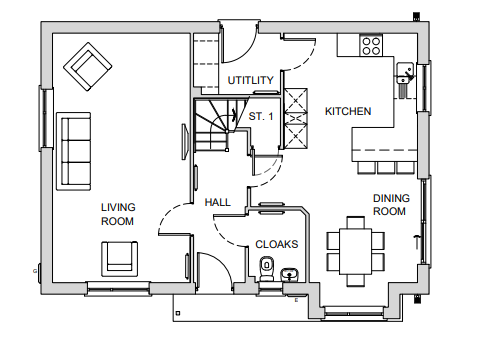 The Sedgwick benefits from a large dual aspect lounge, providing a light and airy space with plenty of room for growing families . There is also a welcoming hallway, utility room and downstairs WC.