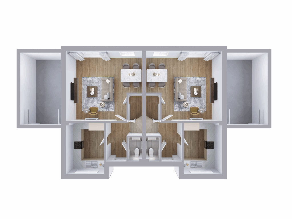 Externally, The Gelt comes with curb appeal featuring a small porch area, windows and doors in our trademark anthracite grey and a private driveway in Tegula blocked paving. Turfed gardens are also included, giving you peace of mind that everything is taken care of when you move in. Plus, some plots include an attached garage, providing even more storage space.