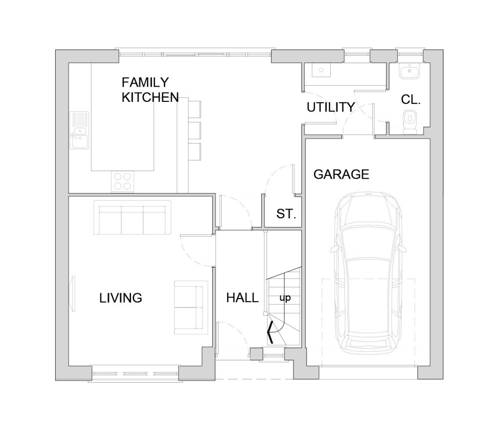 The Hutton is a delightful 3-bedroom detached property with integral garage. This uniquely designed home boasts an unconventional layout offering a characterful twist alongside the benefits of a new build property.