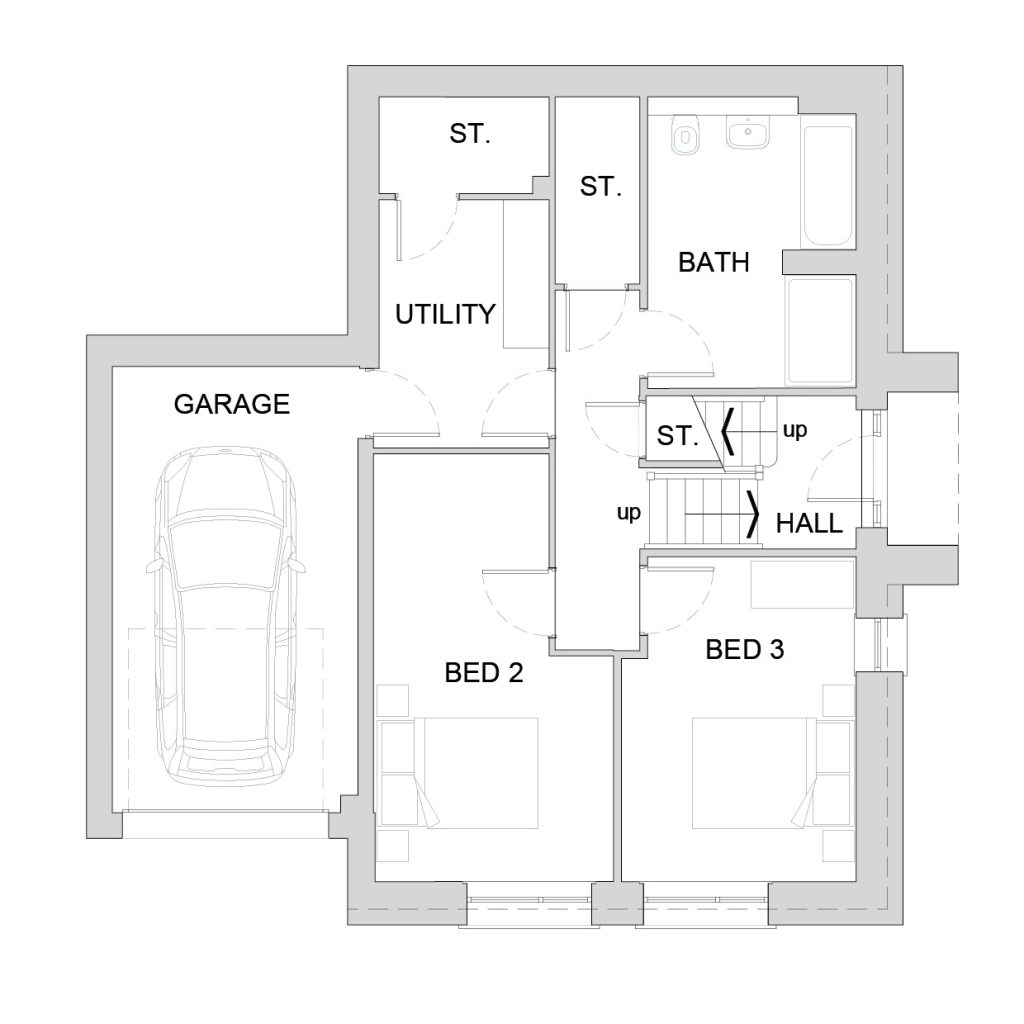 On the ground floor we have an integral garage .along with a utility, 2 bedrooms and lots of storage along with the main bathroom.