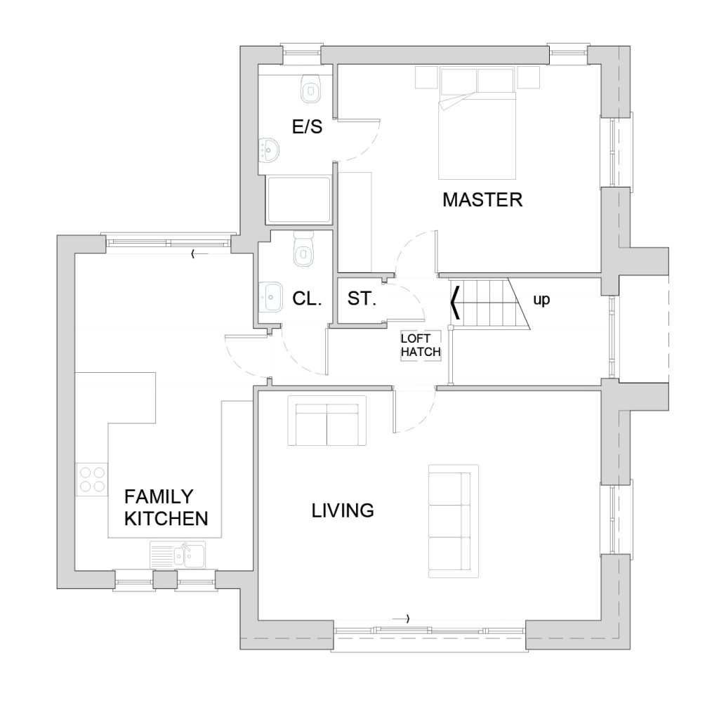 First floor has a family kitchen with separate lounge and a master bedroom compete with ensuite , cloak room and storage.