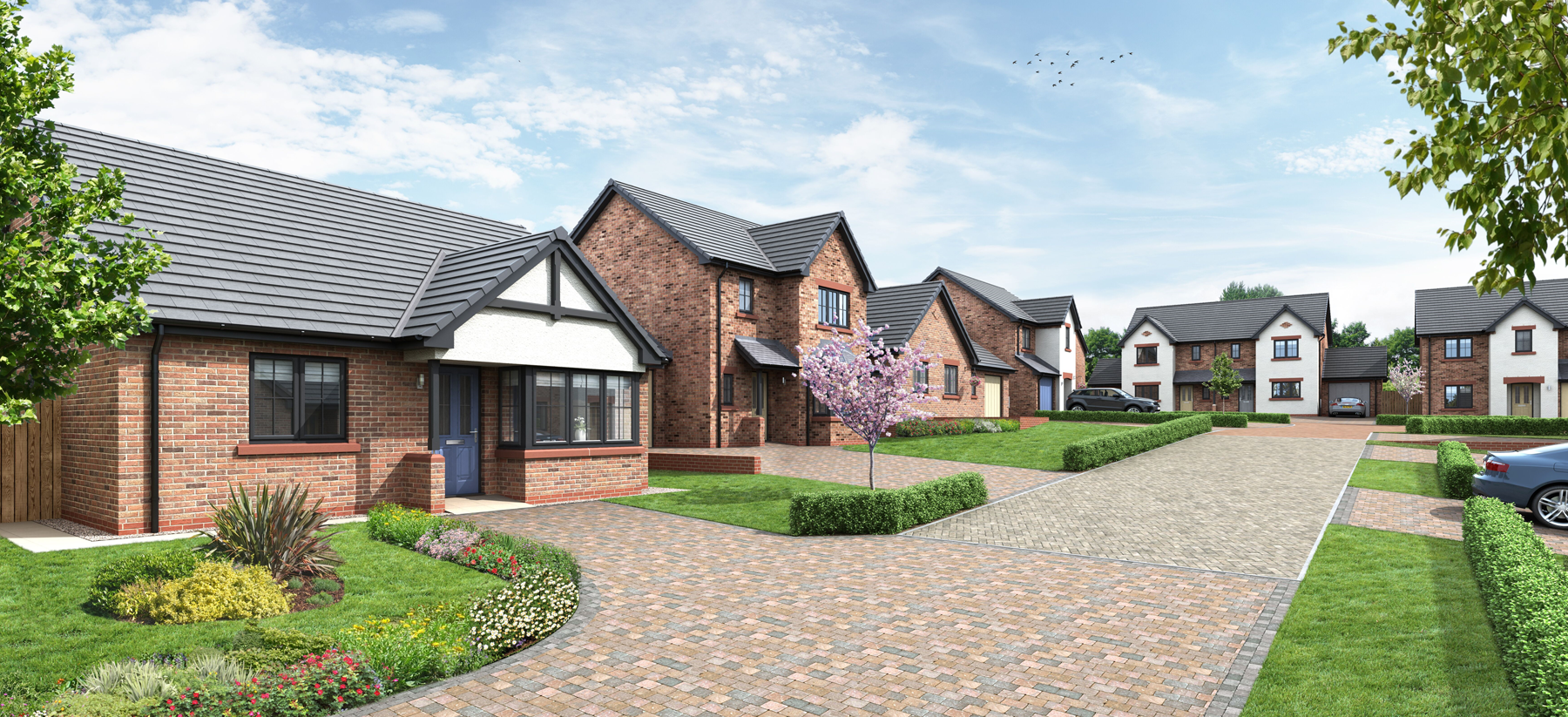 Development street scene imagery is shown for illustrative purposes only and will often not incorporate engineering features and positions such as pump houses, sub stations, road speed humps, road finish specification, etc, which are specific to the development. Please ask our sales adviser for details of the treatments specified for individual developments.